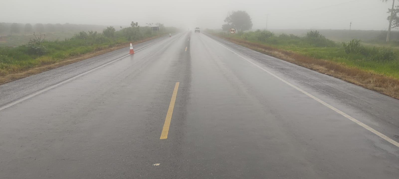 rodovia, o veículo aquaplanou devido à pista molhada, ocasionando a perda do