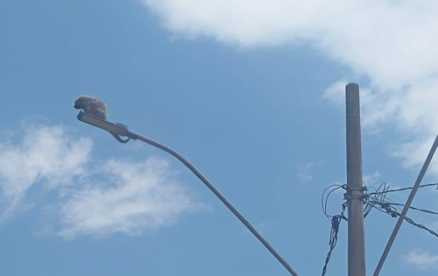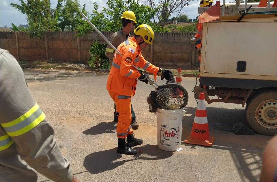 Corpo de Bombeiros salva ouriço que se refugiou no alto de um poste para fugir de cães; em Lagoa Formosa