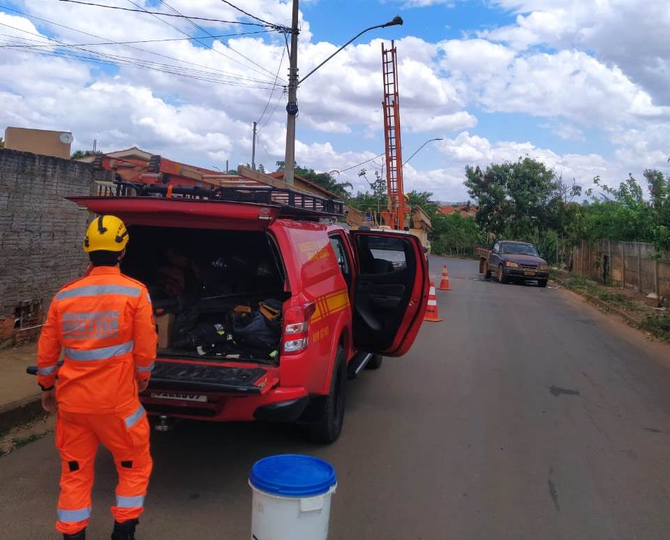 ao local e, com o apoio de funcionários da CEMIG, que usou um veículo com