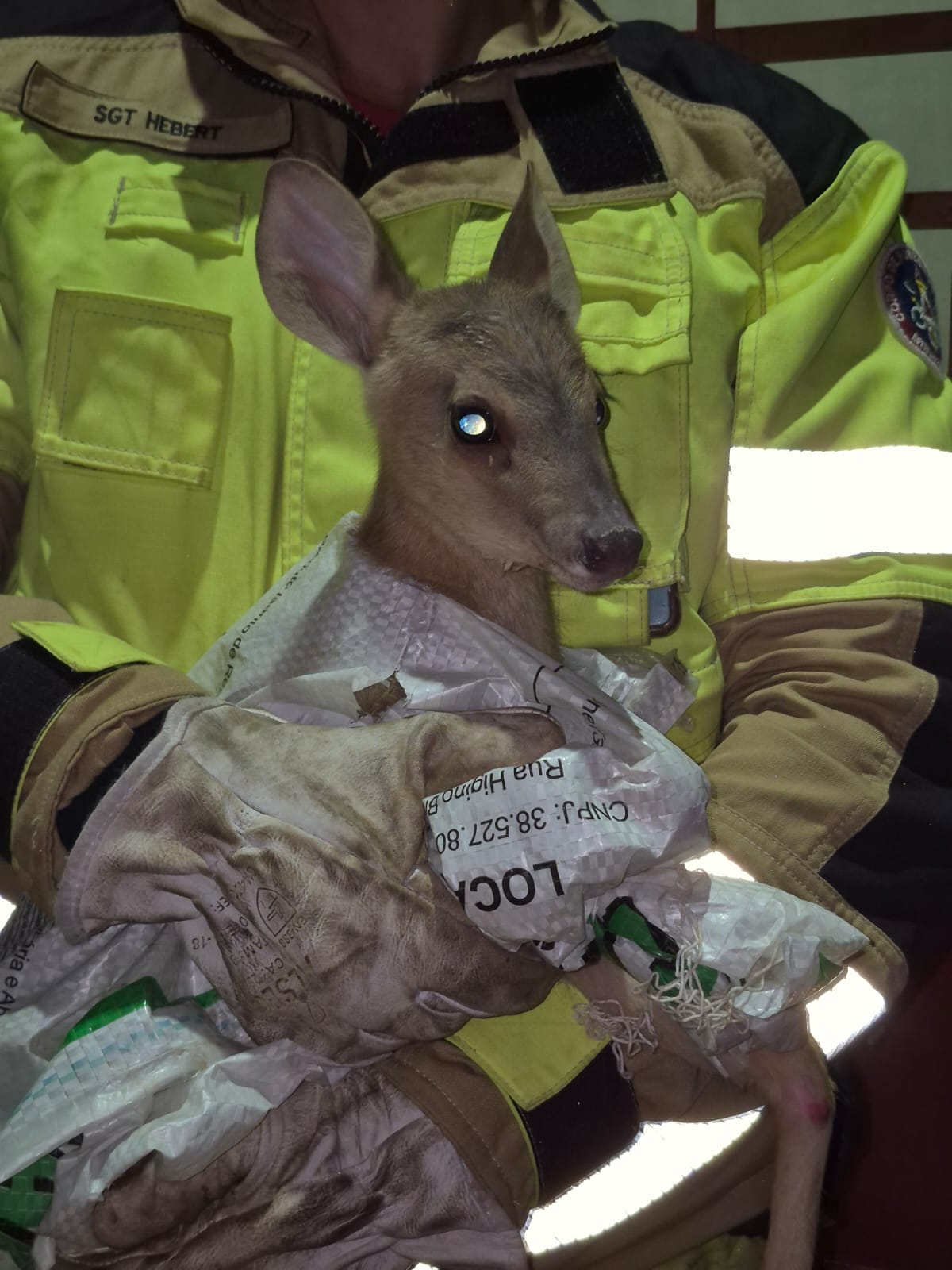 Lagoa Formosa - Veado atropelado é resgatado pelo Corpo de Bombeiros no Distrito de Monjolinho de Minas