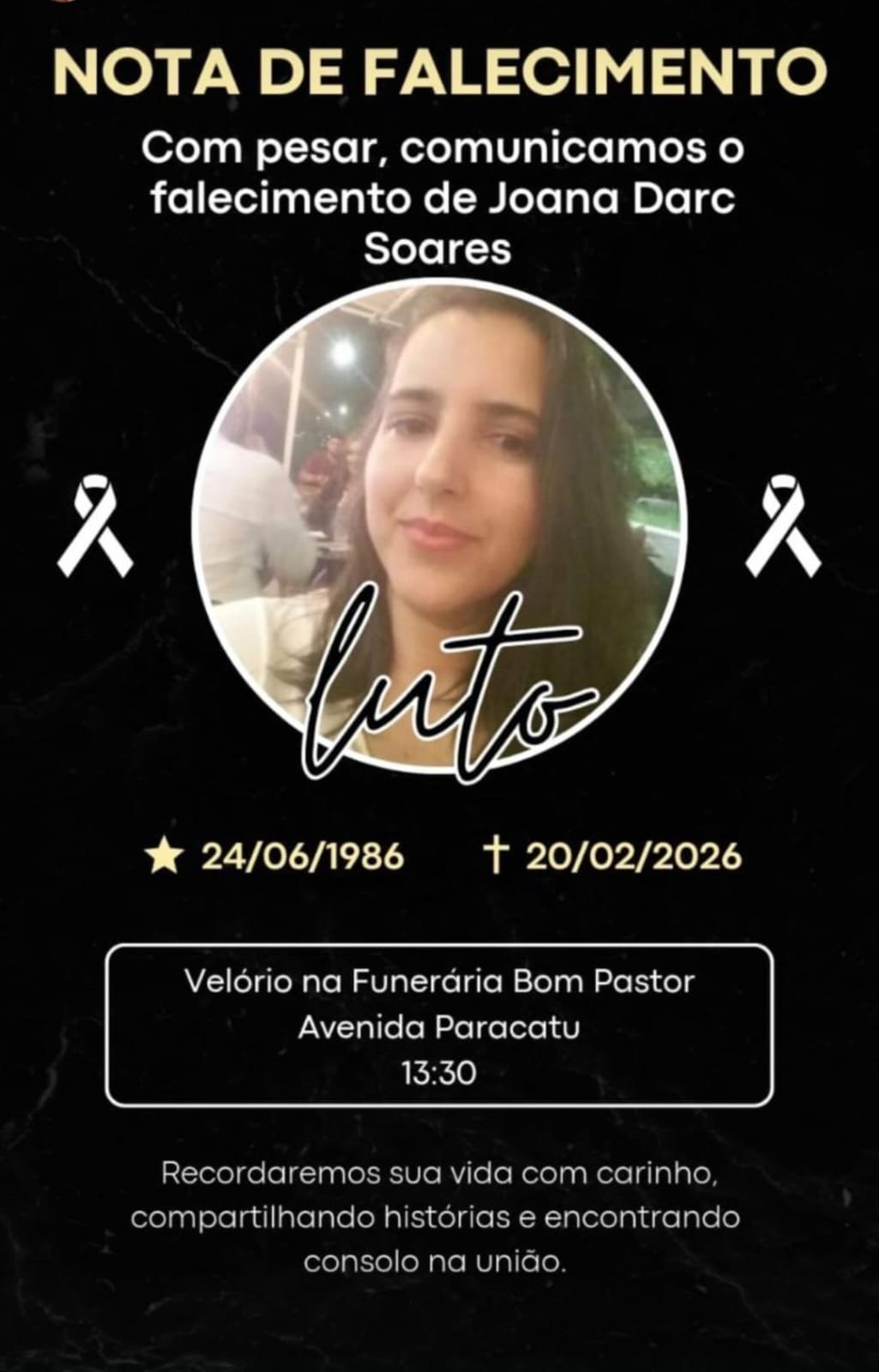 Com o forte impacto da colisão, Joana não resistiu aos ferimentos e morreu ainda no local. Outras duas pessoas ficaram gravemente feridas.
