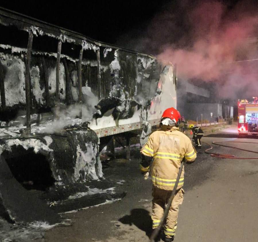 totalmente desenvolvidas, consumindo a estrutura da carreta. Os bombeiros