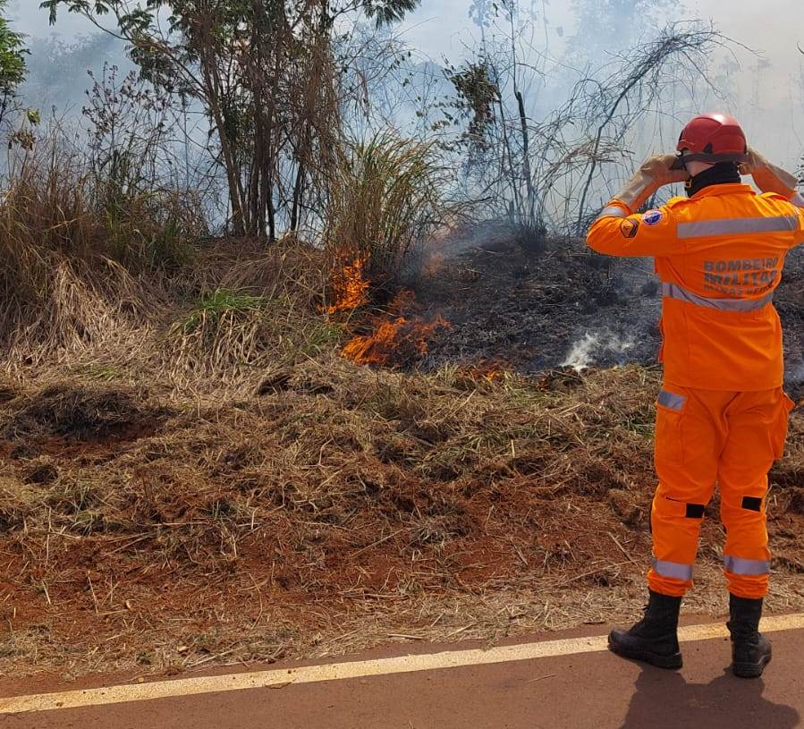 Na manhã desta quarta-feira (29), o Corpo de Bombeiros foi acionado para combater um incêndio de grandes proporções na Mata do Catingueiro, em Patos de Minas.