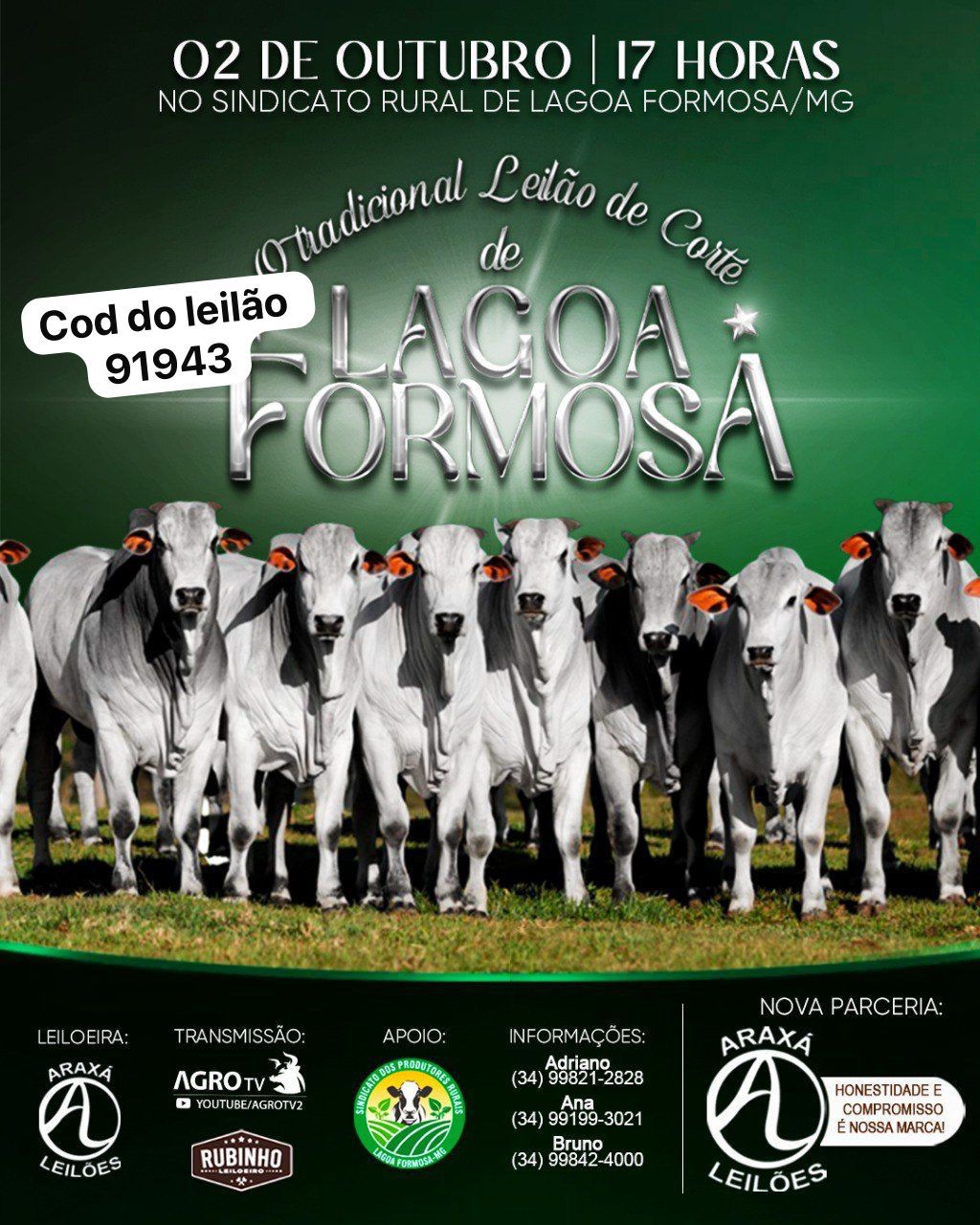 Rurais de Lagoa Formosa com a Araxá Leilões, e acontece em uma frequência alternada,