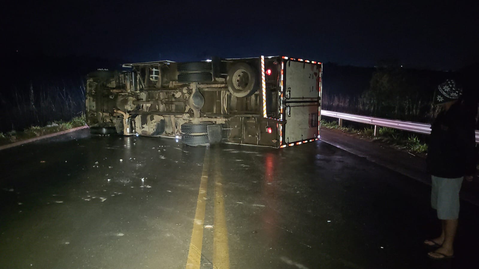 Acidente ocorreu durante a madrugada desta segunda-feira; motorista não se feriu e trânsito segue sendo desviado pelo distrito de Guarda dos Ferreiros