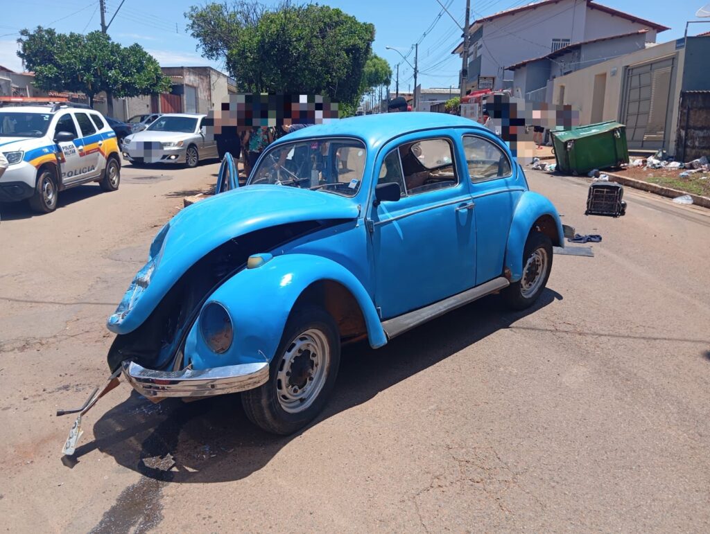 Acidente entre Fusca e ambulância do SAMU deixa idoso gravemente ferido; em Carmo do Paranaíba