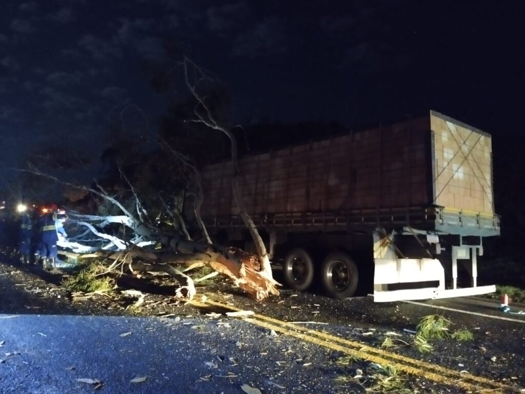 Árvore cai sobre a BR-262 e atinge caminhão e ônibus da Gontijo com 27 passageiros