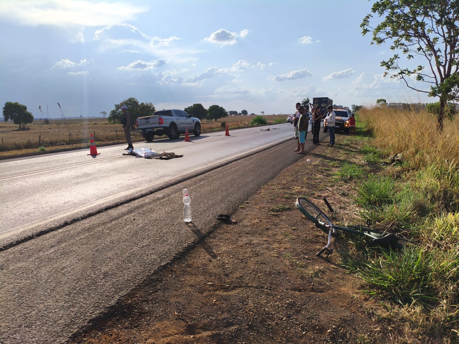 bicicleta no acostamento da via, porém ao se aproximar percebeu que vítima