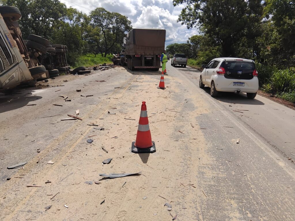 motorista não sofreu ferimentos, porém parte da carga se espalhou pela pista