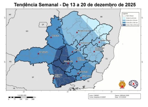 Defesa Civil monitora Minas Gerais diante da previsão de tempestades severas até o dia 20 de dezembro