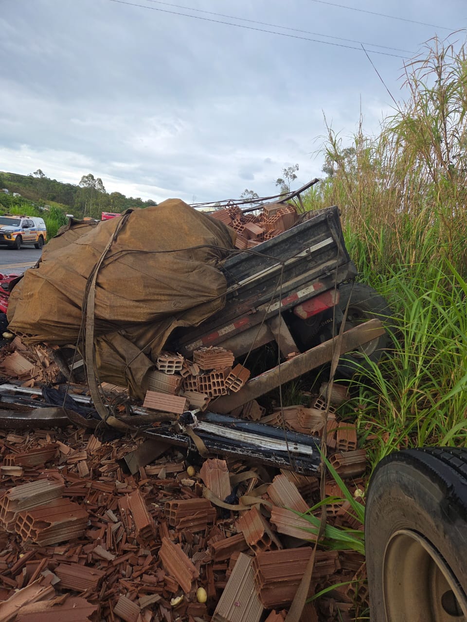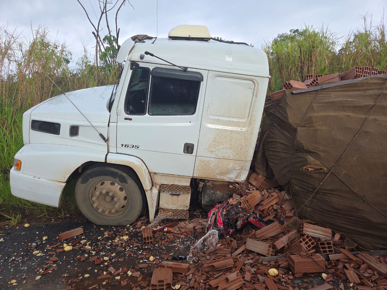 no local. O condutor da carreta carregada com tijolos, teria saído ileso.