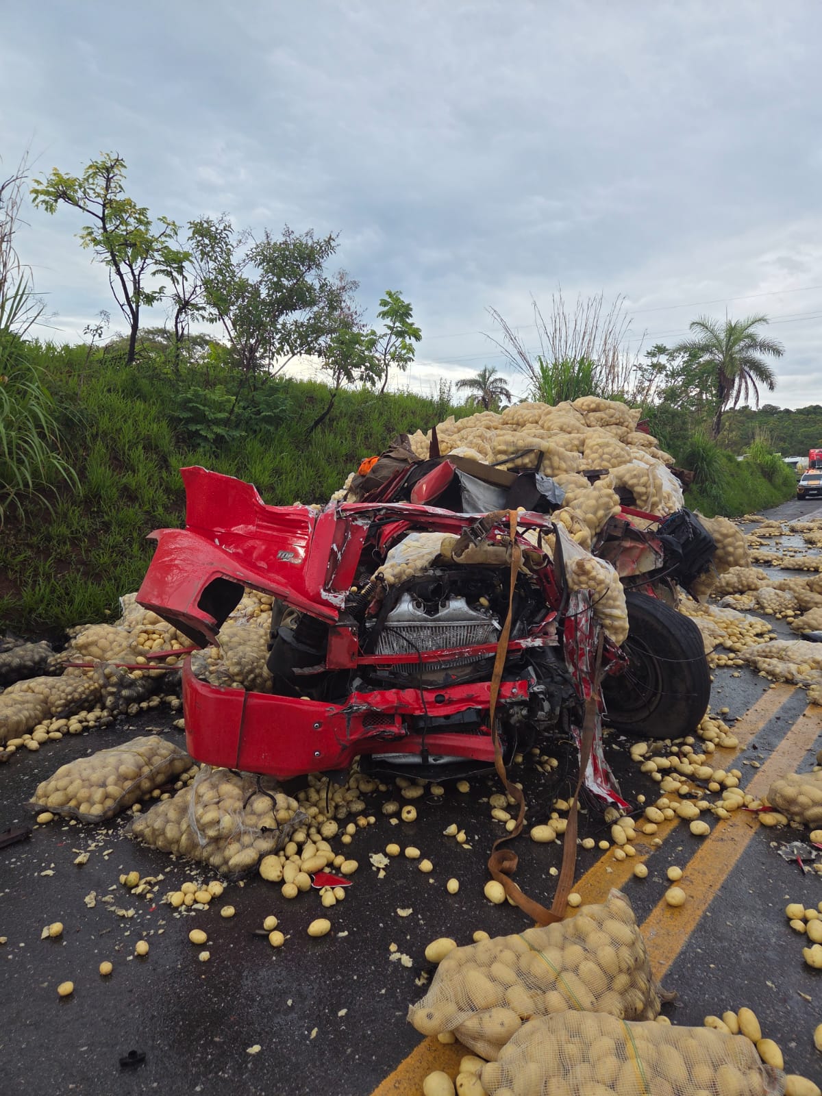 motorista do caminhão, que estava carregado com batatas, não resistiu e morreu
