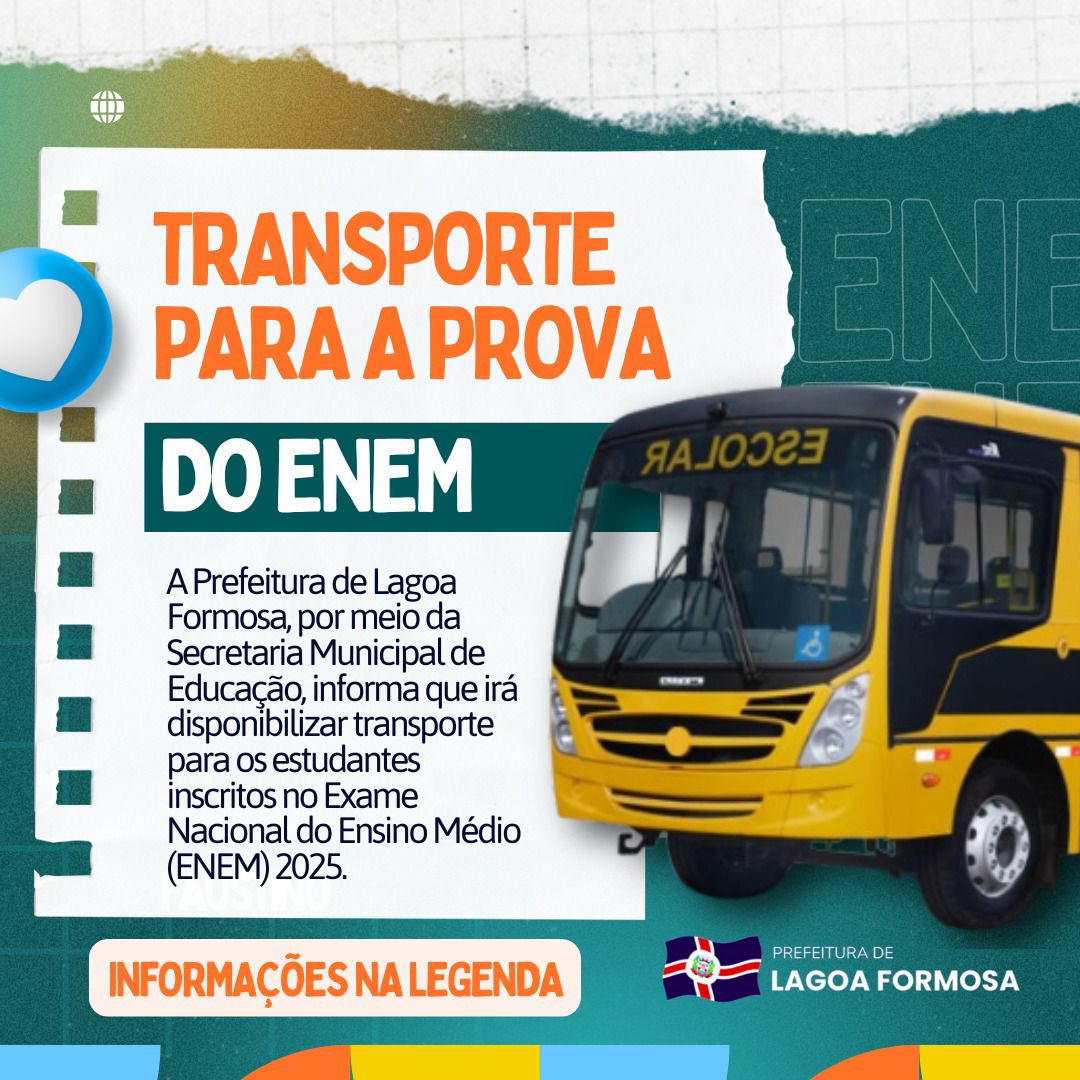 Prefeitura de Lagoa Formosa irá fornecer transporte gratuito aos estudantes inscritos no ENEM 2025