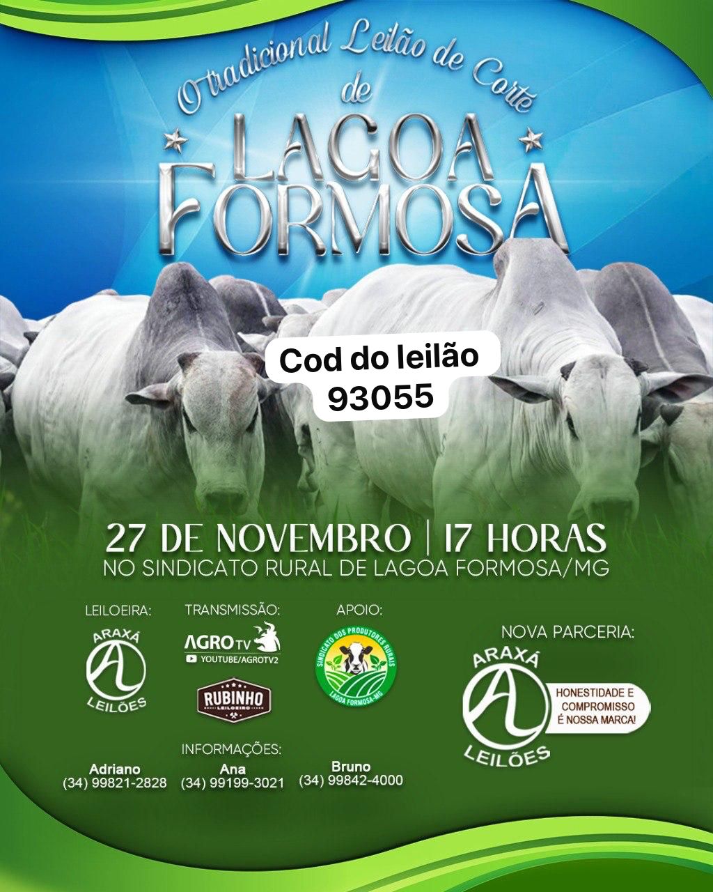 O leilão é resultado de uma parceria entre o Sindicato dos Produtores Rurais de Lagoa Formosa e a Araxá Leilões