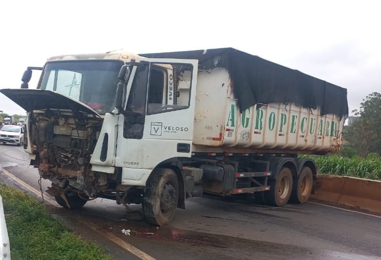 Caminhão com placas de Carmo do Paranaíba bate em mureta na BR-354; após motorista perder controle direcional