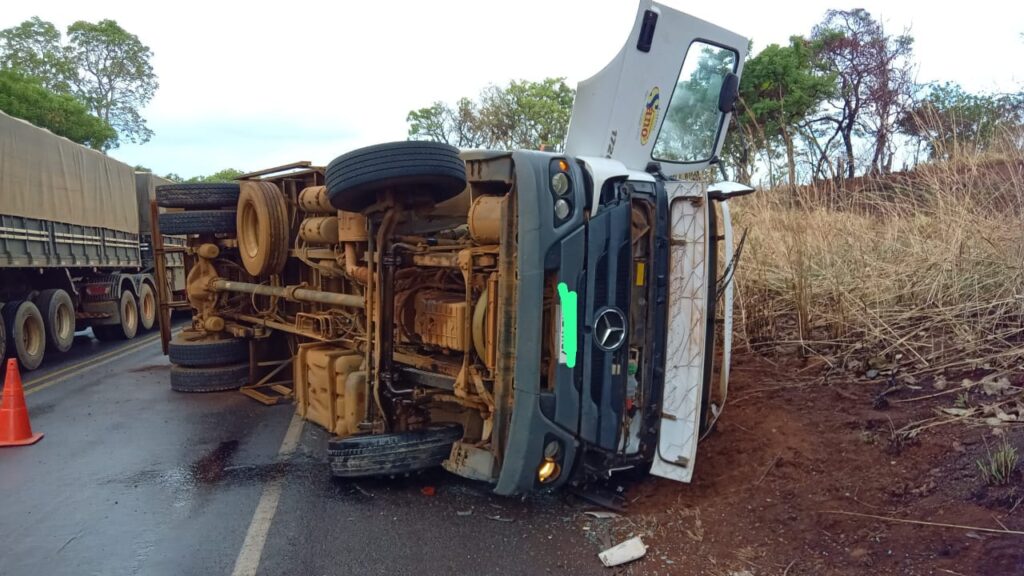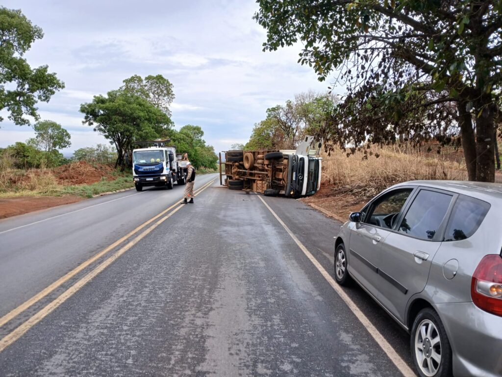 BR-354, em Carmo do Paranaíba. O fato envolveu um caminhão-baú que tombou após