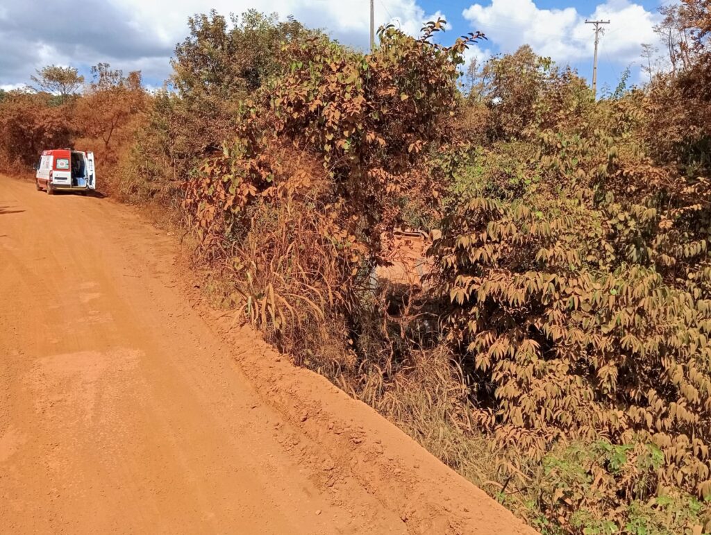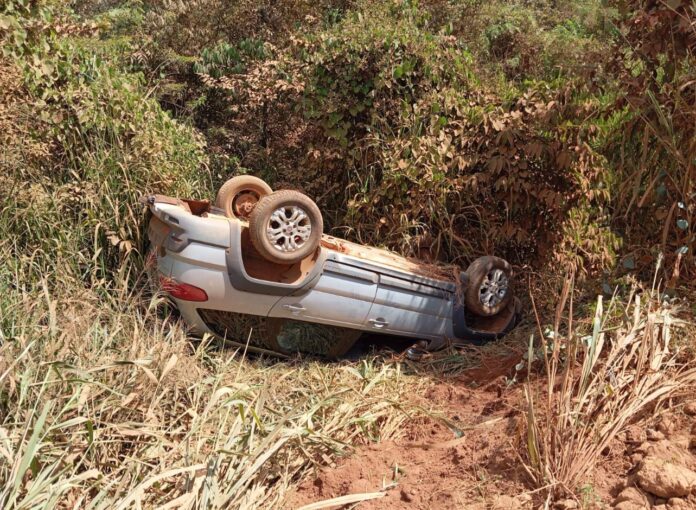 Carmo do Paranaíba – Carro capota em acesso à Lagoa dos Estulanos e mobiliza SAMU