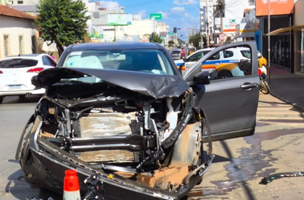 Condutora avança sinal vermelho e provoca grave acidente, em Patos de Minas