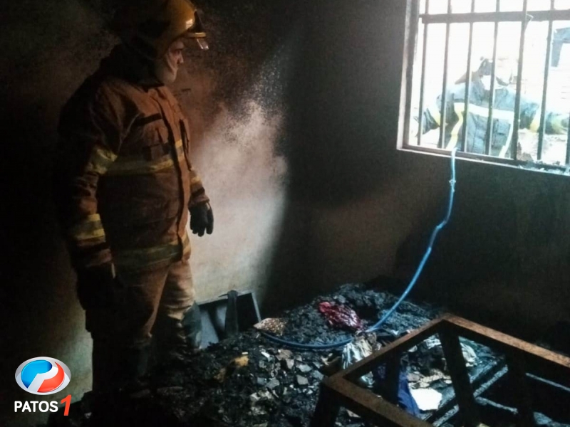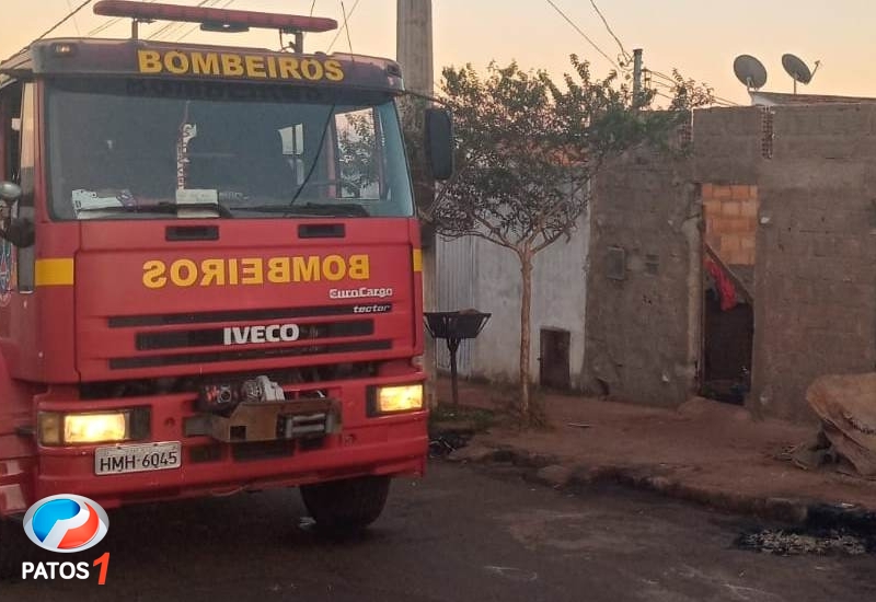 Corpo de Bombeiros combate incêndio em residência no bairro Jardim Esperança em Patos de Minas