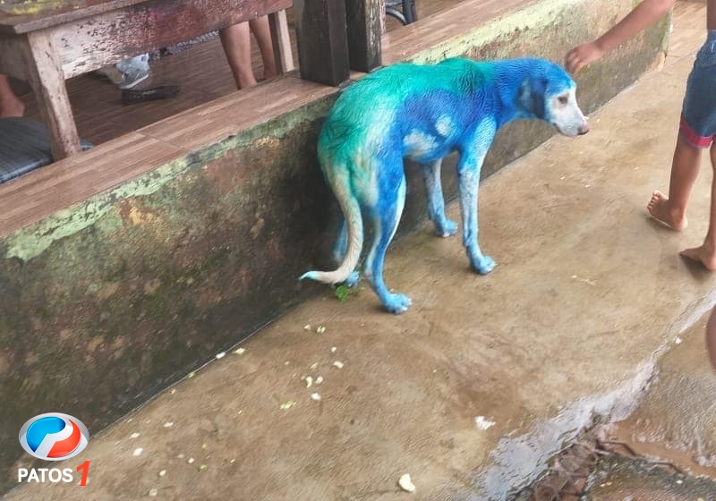 Covardia: indivíduos pegam cadela e tingem o animal em Carmo do Paranaíba