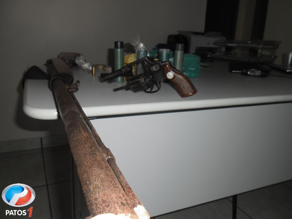 De posse das informações os militares deslocaram-se até a residência do gerente onde o mesmo foi localizado, sendo apreendidas no local 02 armas de fogo sendo um revolver calibre 32 com uma munição intacta e uma espingarda de fabricação caseira, além de pólvora, esferas e espoletas para recarga da espingarda. Diante dos fatos o autor foi preso e conduzido para a Delegacia de Polícia Civil da cidade de Patrocínio, onde foi autuado em flagrante delito, as armas e munições foram apreendidas.