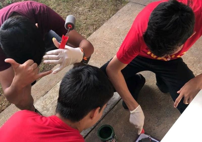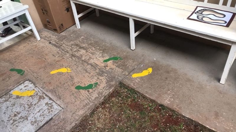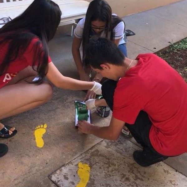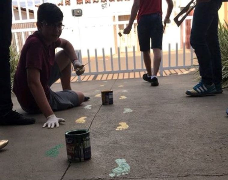 internas, pintaram o chão com pegadas para estimular mais o raciocínio e