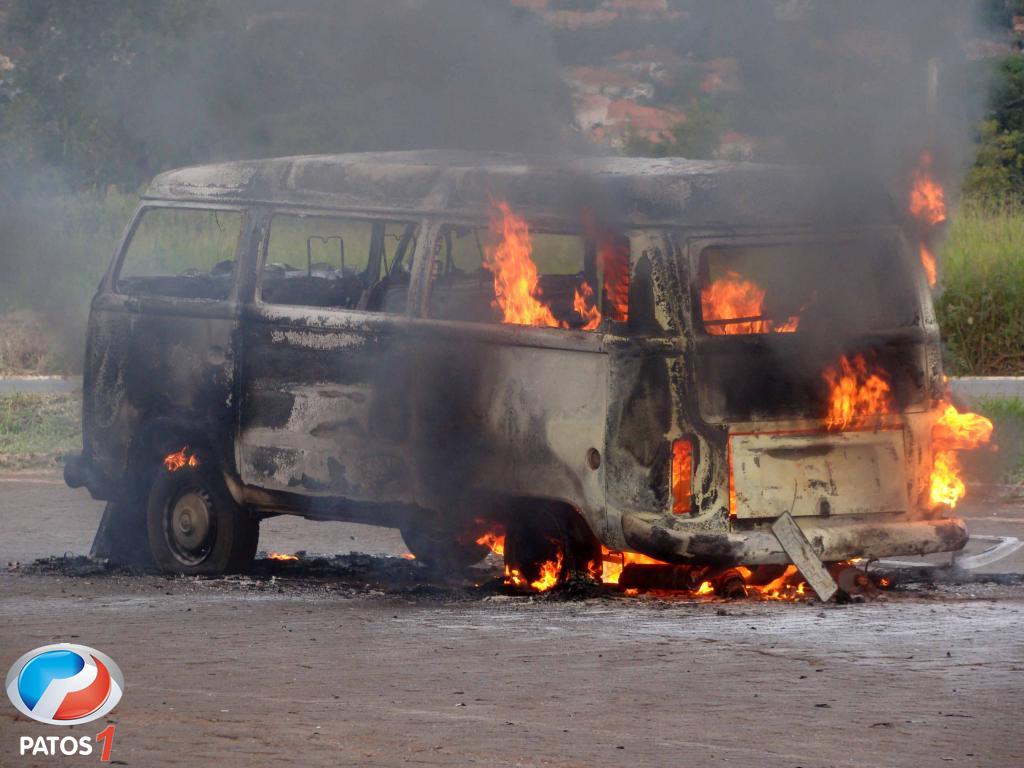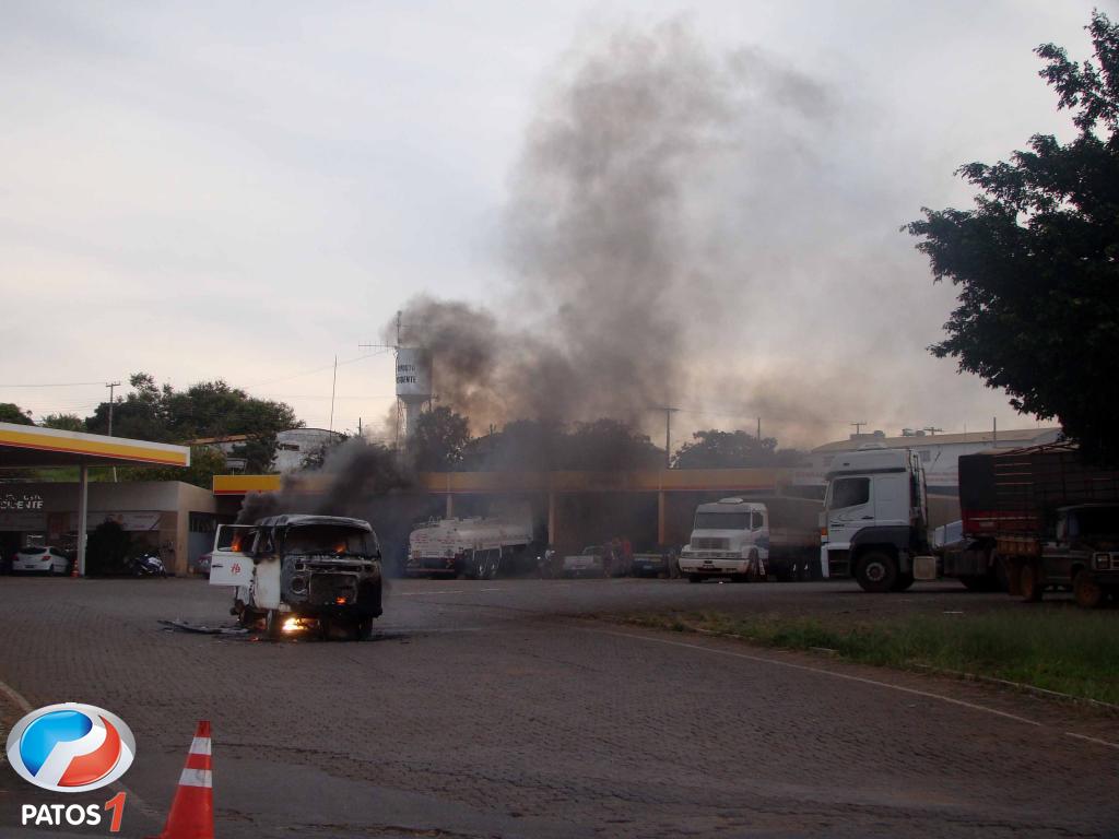 Kombi pega fogo e assusta motorista e moradores da cidade de Presidente Olegário