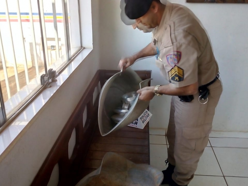 momento, o rapaz pegou duas bacias e algumas panelas que estavam na varanda do imóvel e fugiu do local. Uma moradora da casa chegou ao lugar e viu o vidro da