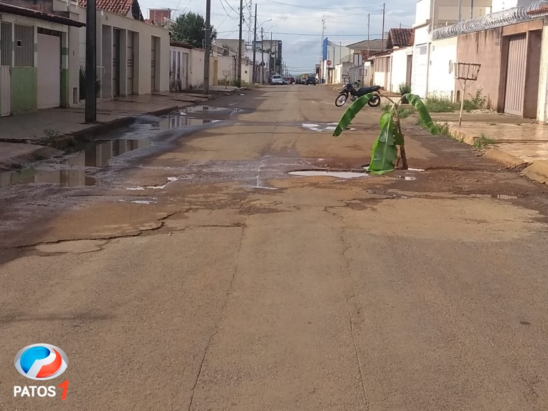 Moradores do Bairro Amazonas em Carmo do Paranaíba plantam bananeira em rua cheia de buracos
