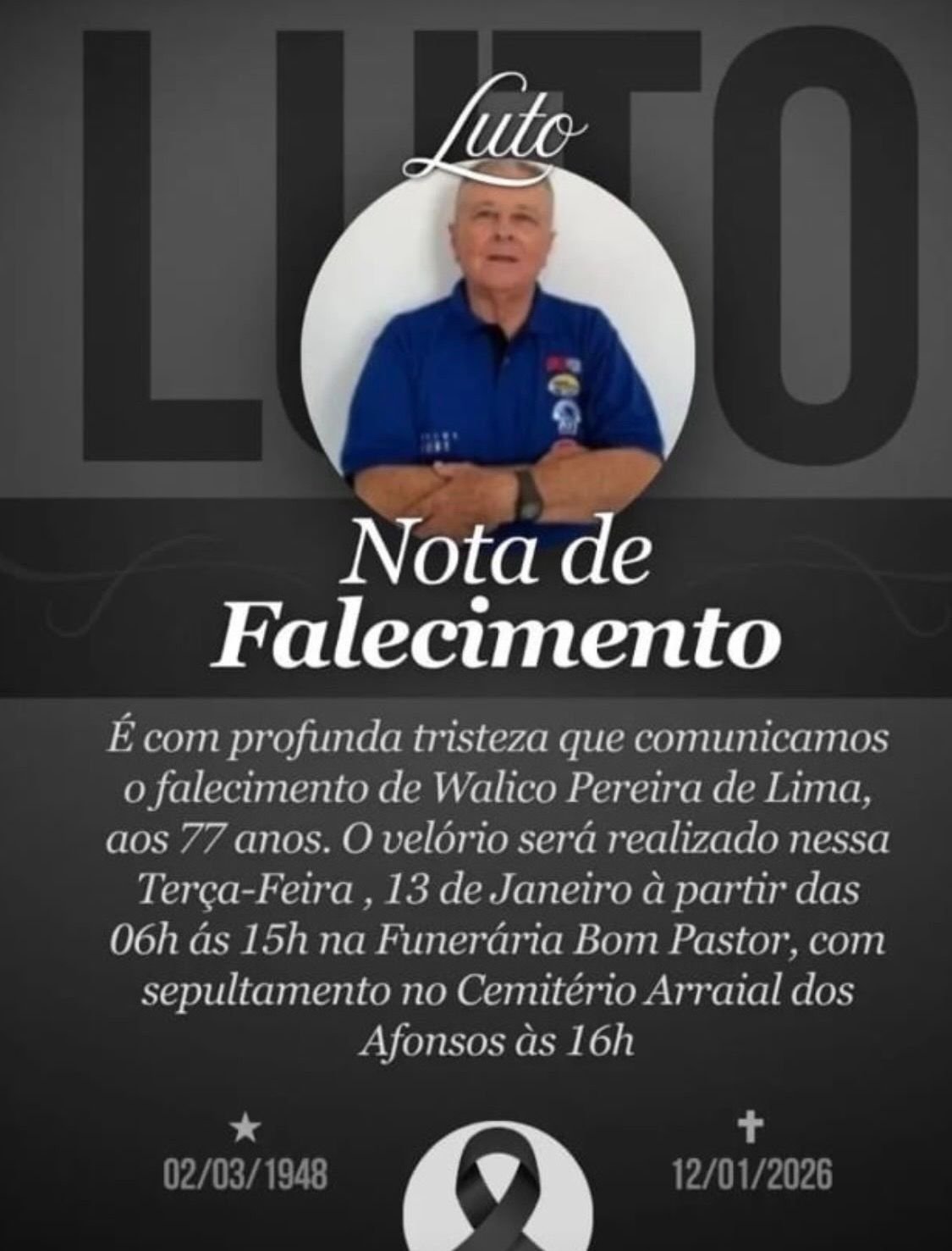 Na noite desta segunda-feira (12), morreu, aos 77 anos, Walico Pereira de Lima, um dos radialistas mais populares e queridos da região, conhecido carinhosamente como Walico das Folias de Reis.