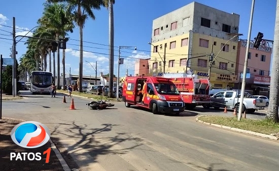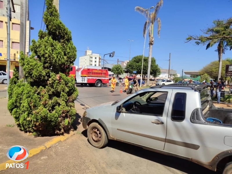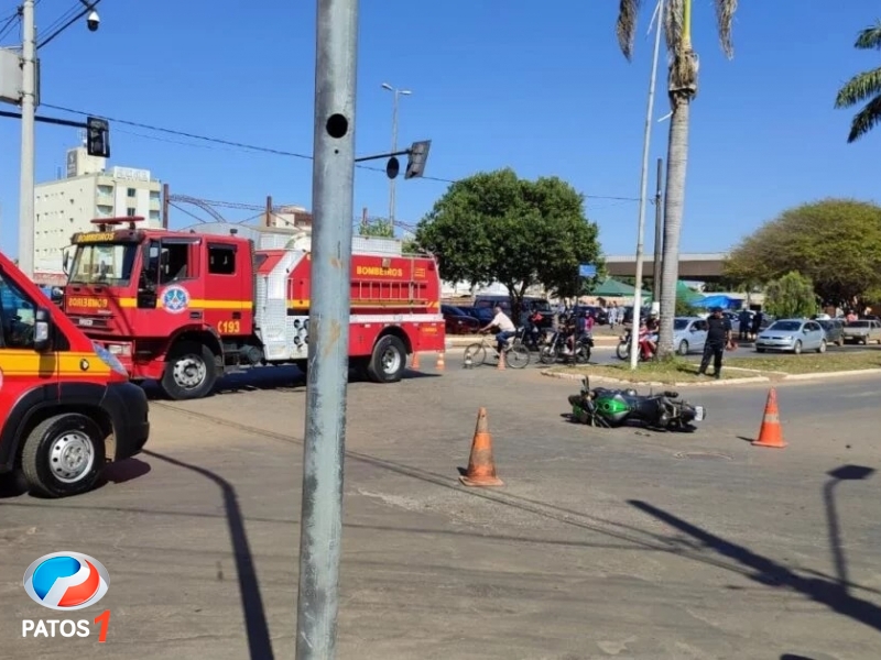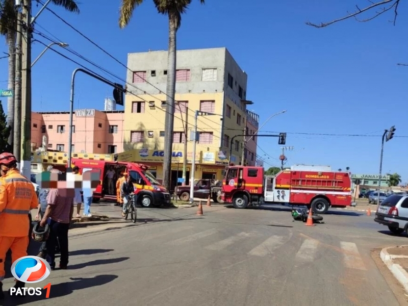 Motociclista fica ferido após colisão com caminhonete em cruzamento na cidade de Patos de Minas