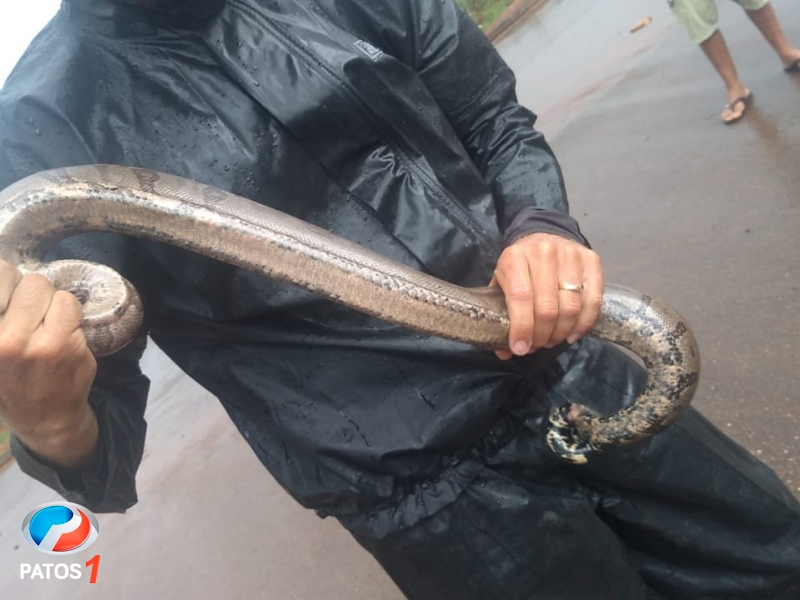 atenção dos moradores pela coragem de pegar o anima com as mãos. A cobra em