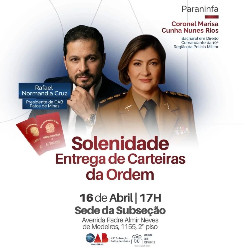 do presidente da OAB Patos de Minas, Rafael Normandia Cruz, e terá como