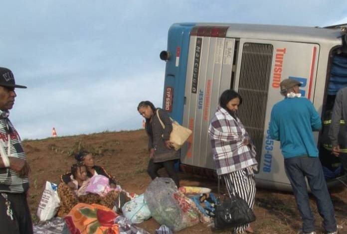 A Polícia Rodoviária Federal – PRF registrou um grave acidente na madrugada deste sábado (14/07) no quilometro 521 da BR-365, no município de Monte Carmelo, próximo ao distrito de Celso Bueno. O ônibus de turismo saiu de Belo Horizonte (MG) com destino a Caldas Novas (GO) quando saiu da pista e tombou. 54 pessoas estavam no veículo e 29 ficaram feridas.