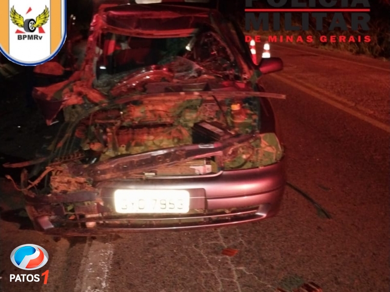 Patos de Minas - Carro de passeio colide contra traseira de caminhão na MGC-354