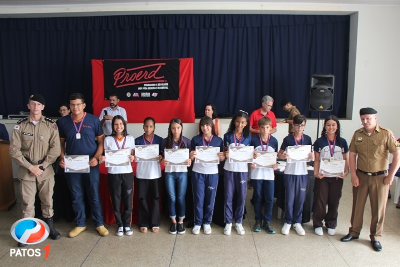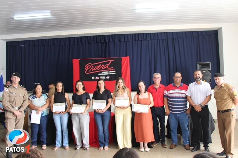 Os alunos do 7º ano das Escolas Estaduais da cidade de Lagoa Formosa e do 1º e 2º ano do Ensino Médio da Escola José Marciano Brandão do Distrito de Monjolinho, receberam nesta terça-feira (18/11), os diplomas de formatura do PROERD, programa social da Polícia Militar de combate às drogas. A solenidade aconteceu a partir das 13h, no Salão Paroquial. Estiveram presentes estudantes, professores, diretores, autoridades civis e militares e convidados especiais (vídeo).