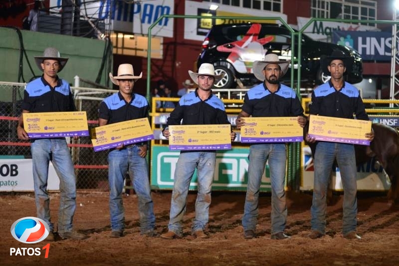 Os cinco vencedores, que obtiveram as melhores notas, além de receberem um prêmio em dinheiro, terão a oportunidade de competir no Rodeio Profissional em touros, que será disputado entre os dias 23 e 26 de maio. São eles: em primeiro lugar, Welisson Ribeiro, de Lagoa Grande (MG); em segundo lugar, Gustavo Venâncio, de Patrocínio (MG); na terceira posição, Paulo Henrique Rodrigues, de Tupaciguara (MG); na quarta posição, Adriano da Silva Firmino, de São João das Missões (MG); e em quinto lugar, Erick Dalisson Paulino, de Coromandel (MG).