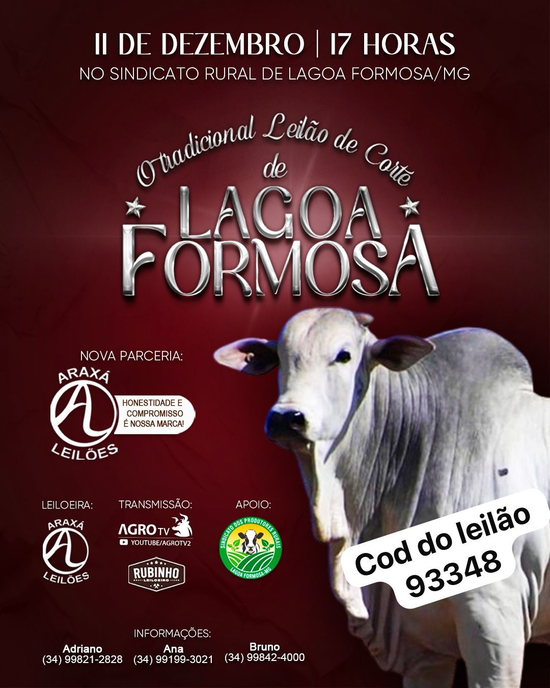 O leilão é resultado de uma parceria entre o Sindicato dos Produtores Rurais de Lagoa Formosa e a Araxá Leilões