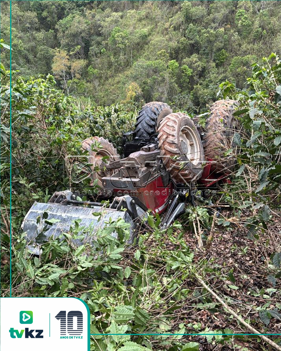 da TV KZ, o trator capotou em uma ladeira, em meio a um cafezal,