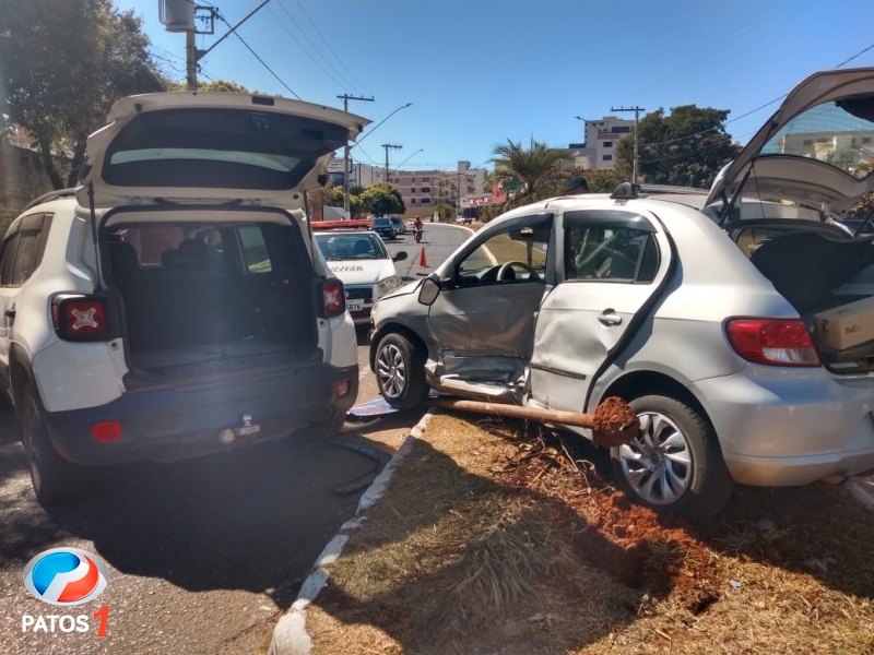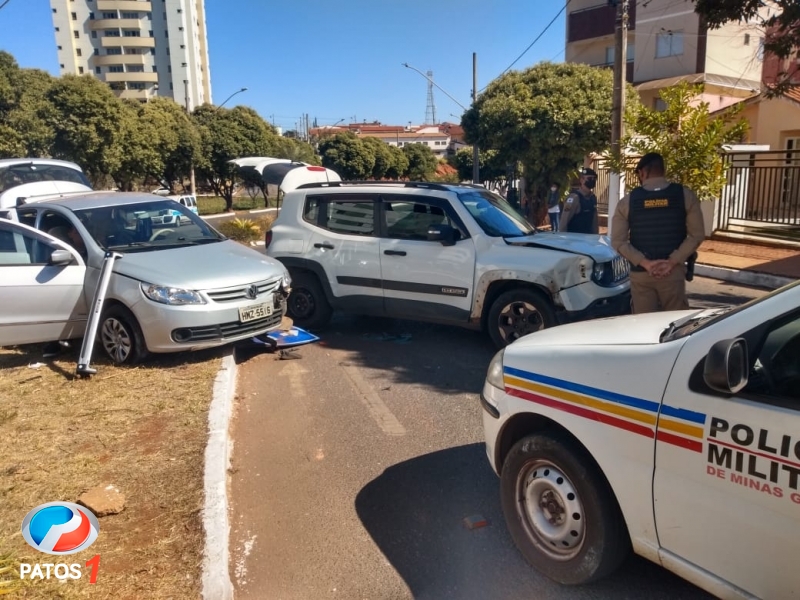 Um violento acidente foi registrado na manhã deste sábado no cruzamento da Avenida Padre Almir com a Rua Joaquim das Chagas, no Bairro Sobradinho em Patos de Minas. A batida envolveu um VW/Gol e um JEEP/Renegade. Apesar dos estragos, ninguém ficou ferido.