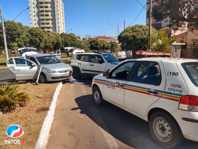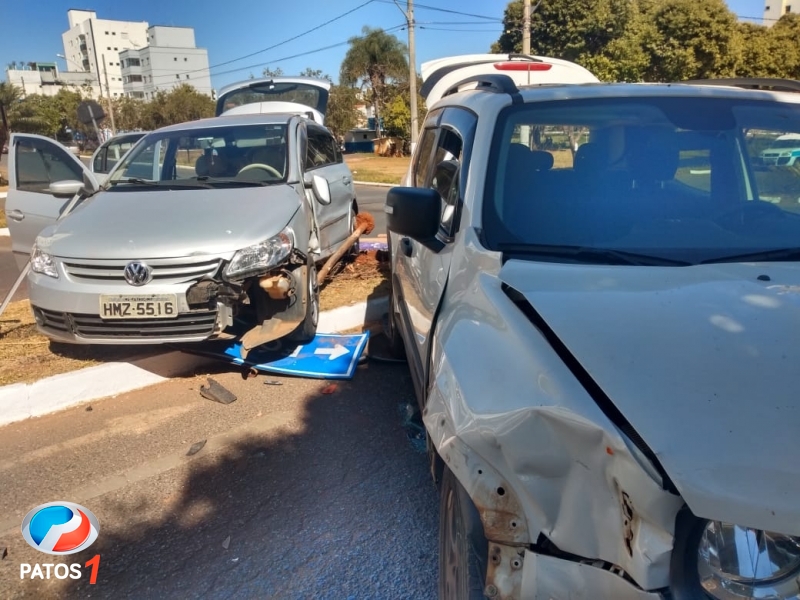 Veículo avança parada obrigatória e causa acidente em Patos de Minas